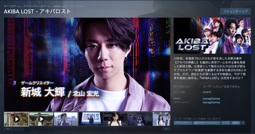 【日本ゲーム大賞2025フューチャー部門受賞作品】北山宏光主演・長編実写群像劇マルチアングルサスペンスゲーム『AKIBA LOST』Steamウィッシュリスト登録受付中!