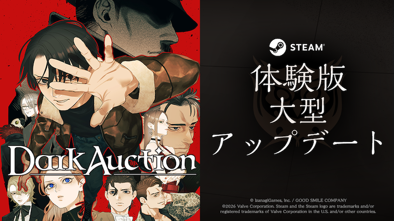株式会社イザナギゲームズ(東京都渋谷区、プロデューサー兼CEO:梅田慎介)と、株式会社グッドスマイルカンパニー(東京都千代田区、代表取締役社長:岩佐厳太郎)は、ミステリーアドベンチャーゲーム『ダークオークション』のSteam®無料体験版を本日1月22日(木)にアップデートしたことを発表いたしました。プレイ範囲はオークションパートを含む1章までを遊ぶことができ、約3時間程度の大ボリュームとなります。